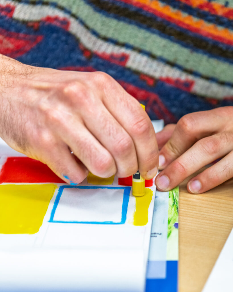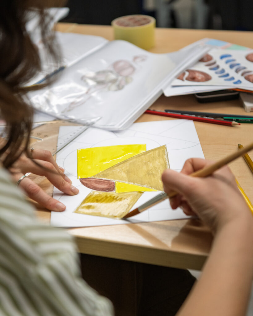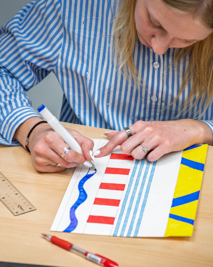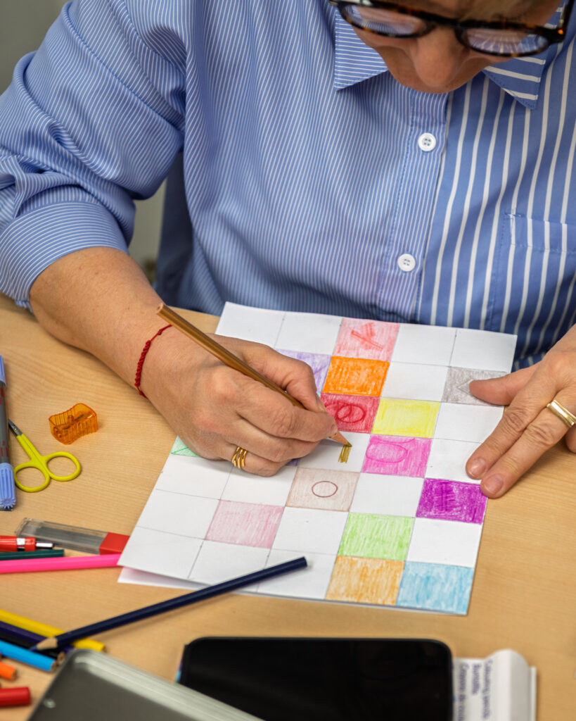 Na radionici dizajna tekstila polaznici su kroz crtanje i eksperimentiranje s bojama razvijali vlastite uzorke i vizualne koncepte. Korištenjem flomastera, boja i različitih tehnika osmišljavali su ritam linija, odnose boja i ponavljanje motiva – ključne elemente svakog tekstilnog dizajna. Naglasak je bio na slobodi izraza i istraživanju: od geometrijskih kompozicija i kontrastnih pruga do organskih, razigranih formi. Svaki rad predstavljao je osobni potpis autora, ali i prvi korak prema razumijevanju kako se ideja prevodi u uzorak koji može živjeti na tkanini.