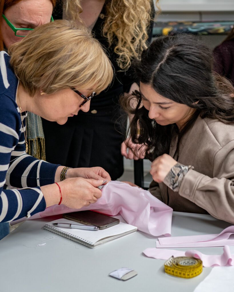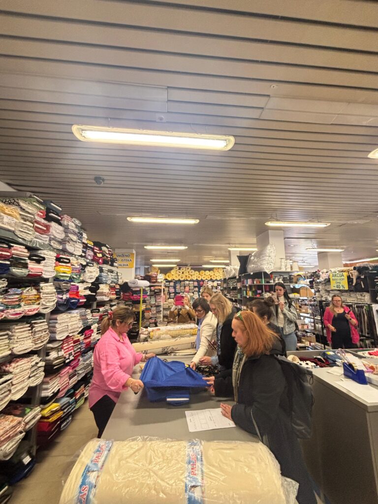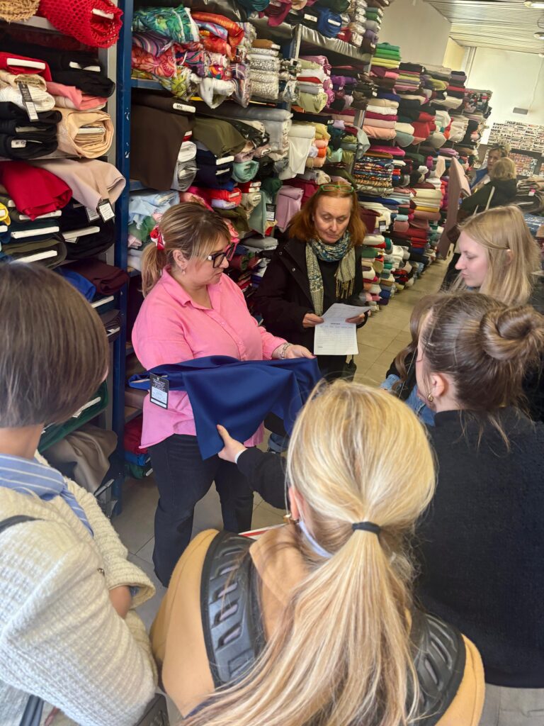 Teorijsko znanje dodatno je obogaćeno posjetom specijaliziranoj prodavaonici tkanina Pamigo, gdje su polaznici, pod stručnim vodstvom modne dizajnerice Nataše Butković, imali priliku uroniti u stvarni svijet materijala. U Pamigu su naši polaznici modnog dizajna i konstrukcije odjeće – modelizma naučili kako prepoznati sirovinski sastav tkanine, kako razlikovati prirodna i sintetička vlakna u praksi, kako procijeniti težinu i ponašanje materijala pri pranju ili čišćenju. Usto, dobili su vrijedne informacije o dostupnosti i nabavi materijala na tržištu; znanje koje je ključno za svaki ozbiljan modni projekt.