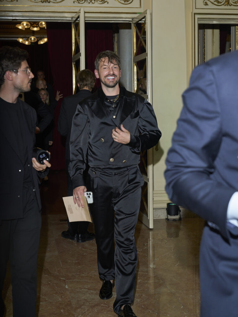 Kroz modele koje je nosio Josip Grabovac, također naš alumnus, jasno se vidi pomak u pristupu: odijelo zadržava strukturu, ali dobiva pokretljivost i novu dinamiku.